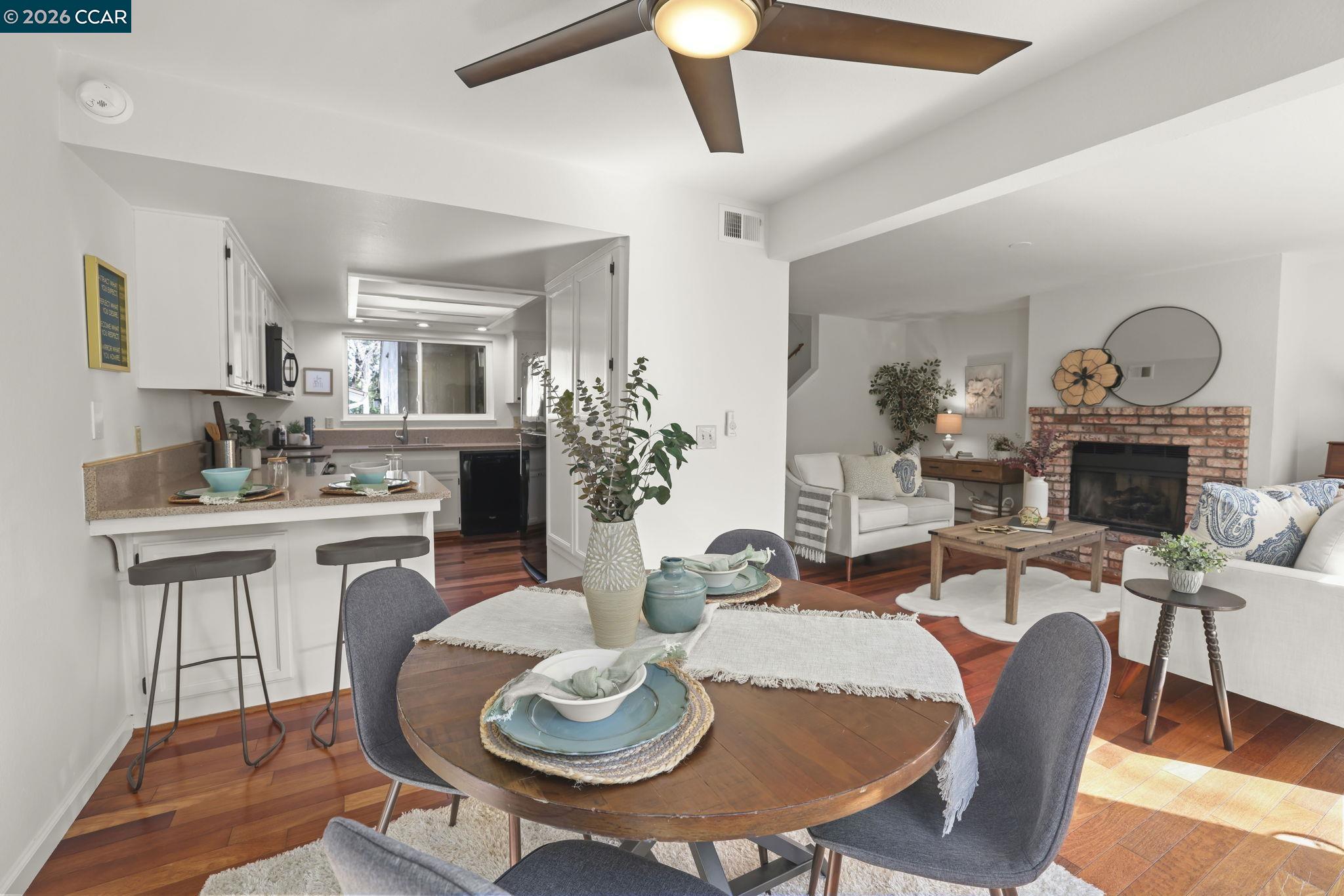Ignacio Gardens Move-In Ready, 3 Bedroom, 2.5 Bathroom Townhome with 2 Car, attached garage. Private End Unit. Beautiful Hardwood Floors throughout. All New Interior paint. New Lighting and Bathroom Mirrors over painted vanities. Updated Granite kitchen with white cabinetry, Breakfast bar and built-in microwave. Functional floorplan features a large living room with fireplace and slider to back patio. Eat-in kitchen with breakfast bar, great for entertaining. Generously sized primary ensuite with lots of closets. Inside laundry closet. Private Back patio with room for a garden or just a place to sit and enjoy a good book. Easy access to freeway. Community Pool.